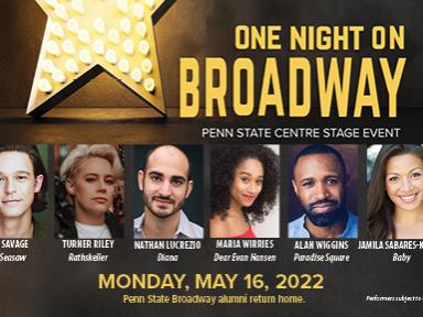 UNIVERSITY PARK, Pa. — Penn State Centre Stage Broadway alumni will return home for "One Night on Broadway," Monday, May 16, at the Penn State Downtown Theatre, 146 S. Allen Street, State College, Pennsylvania. The evening will include wine, hors d'oeuvres, desserts, and the performance. The event supports Centre Stage and the School of Theatre.