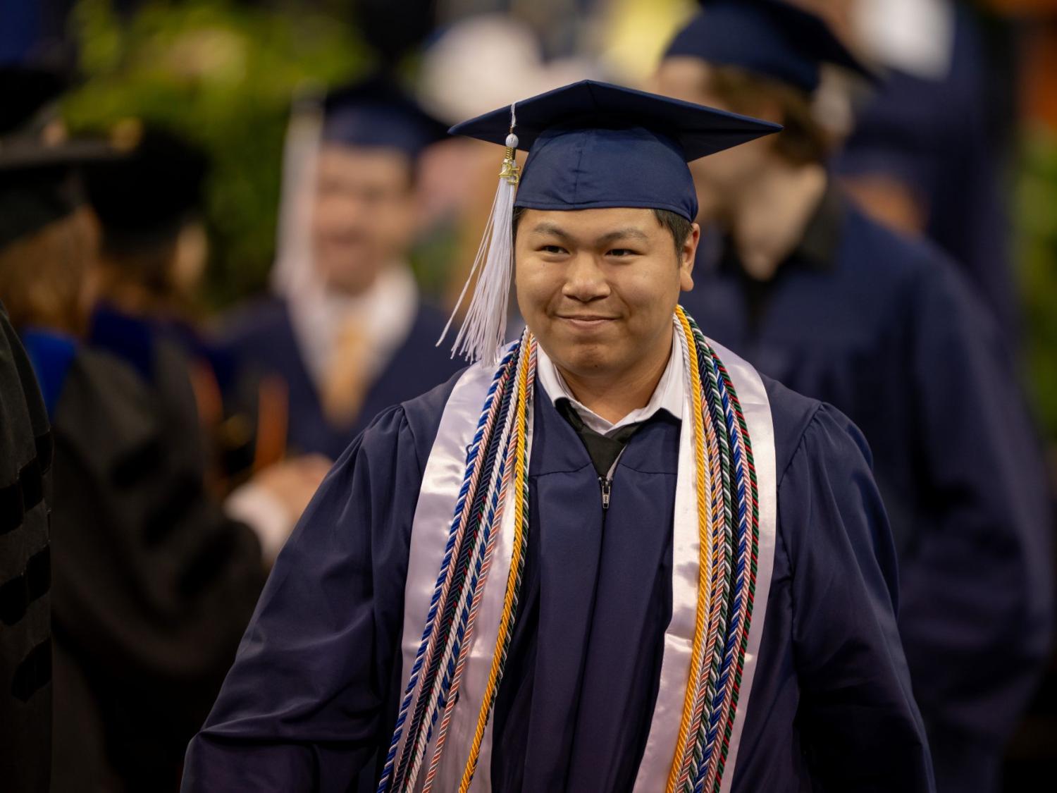 The graduates will enter Junker Center led by student marshals — the students with the highest grade-point average in each of Behrend’s academic schools. This year’s marshals are Matthew Dorosch, for the Black School of Business; Nicholas Frederick, for the School of Engineering; Gemma Malone, for the School of Humanities and Social Sciences; Ethan Woodring, for the School of Science; and Joshua Claypoole, for the Fox Graduate School.