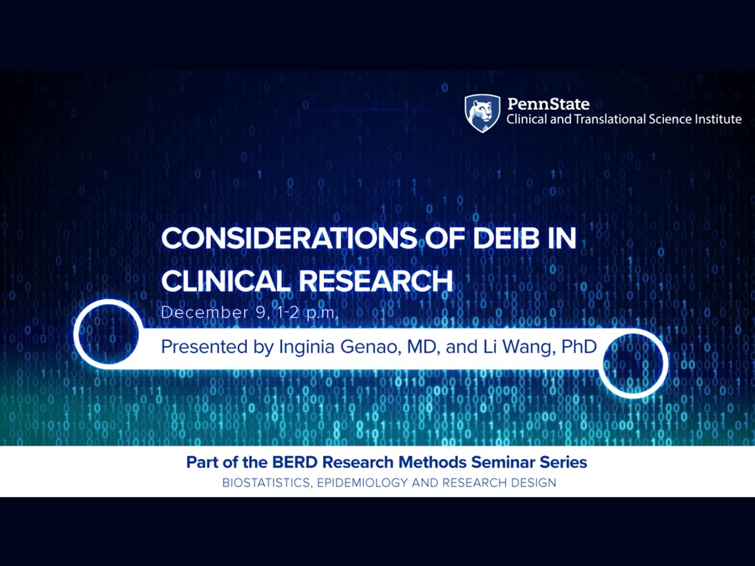 CTSI BERD Webinar: “Considerations of DEIB in Clinical Research” Credit: Penn State. Creative Commons